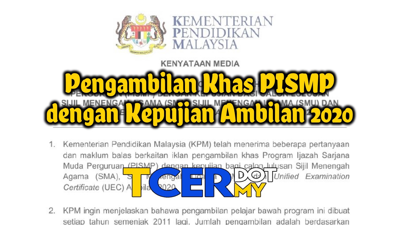 Pengambilan Khas PISMP Dengan Kepujian Ambilan 2020 - TCER.MY